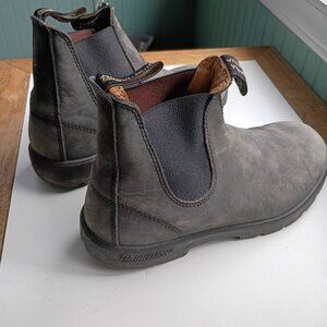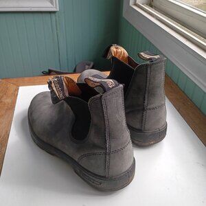Grey Blundstone leather boots in excellent condition. A bit misshapen from storage but will shape back up when you start wearing them! Needs one new pull tab, which Blundstone will mail you for free if you contact them!
