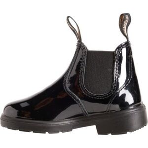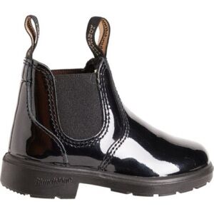 Blundstone Kids’ boots #2255 Black Patent sets kids free skips laces and lets you concentrate on tying a little bow tie. Dress your kids in the lace-free Blundstone boots they love, now in a patent finish. All-day dry comfort. Removable footbeds for months more wear. Perfect hand-me-downs. Easy to wipe clean.