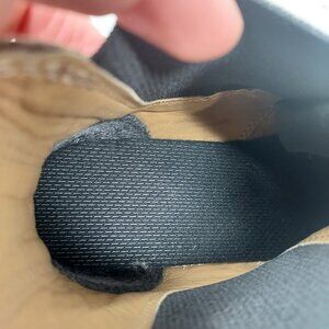 Please note signs of wear on bottom and scratch in back as shown. Please note any discoloration blends in with the intentionally distressed finish of the material. Please note BRAND NEW INSOLE as shown