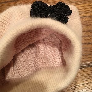 Darling blush angora blend beanie with pretty bow detail. Bow is beaded. It's so cute!