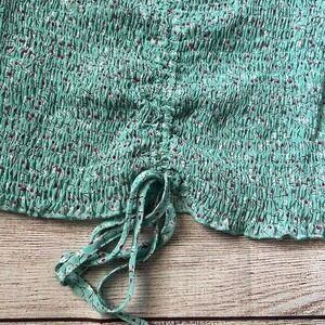 Blush BJ Mint Green Floral Off Shoulder Ruched Crop Top Medium NWT Boho