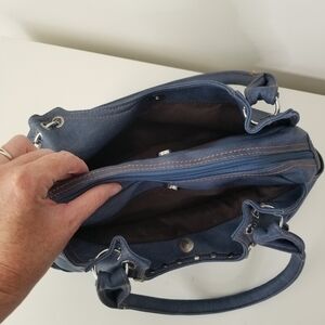 Gently used Blush Faux Leather Shoulder Bag. Has a blue denim look to it.