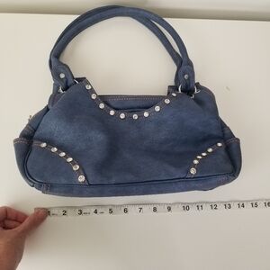 Blush Blue Denim Style Faux Leather Shoulder Bag Rhinestone Details Y2K