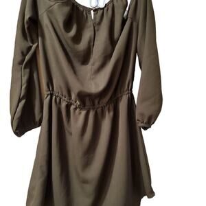 Blush Cold Shoulder Olive Mini Dress M Long Sleeve Boho Party