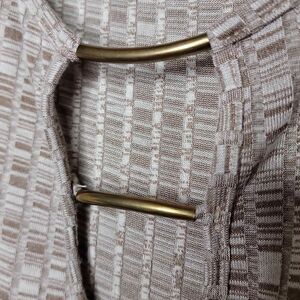 Side Slit, Curved Hem, Short Sleeve, Dress, Sweater, Gold Bars, V Neck, Cutout Neckline, Rounded Hem, Knit, Casual, Everyday, Tunic Style, Stretch, Polyester, Rayon, Spandex, Textured, Heathered, Brown, Tan, Fall, Spring