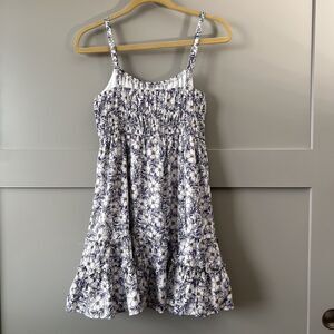 Blush & Daisy Dress Womens Medium White Purple Floral Smocked Ruffle Lined Summer