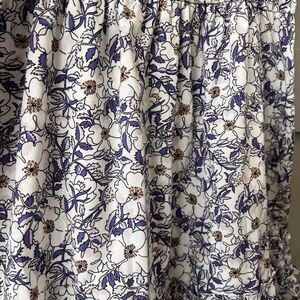 Style features allover floral print with purple and brown accents, feminine ruffle hem, and fully lined interior
