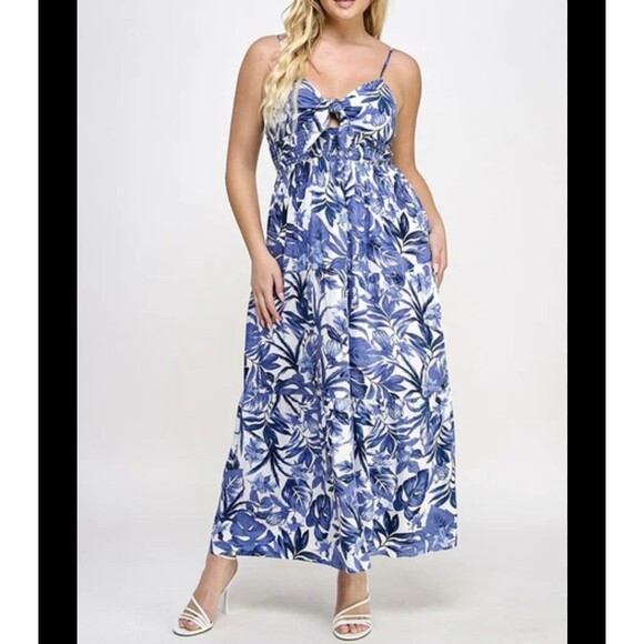 Blush & Day Womens Dress Tiered Sleeveless Lined Boho Size M Palm Leaf