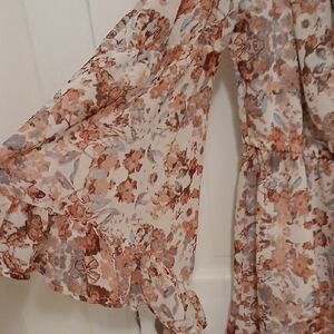 Chic mini dress with floral pattern. Features flowing sleeves. Ideal for stylish outings. off the shoulder dress