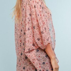 Blush Floral Short Sleeve Sheer Hi-Lo Kimono
