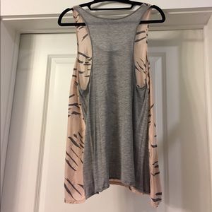 Silk blush tank with a casual gray racerback. A way to look put together but effortless. Very soft, comfortable tank.