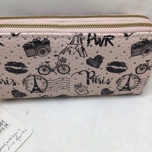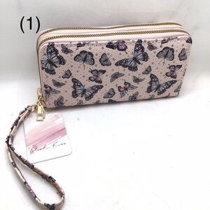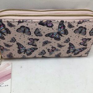 Blush Kiss Glitter Paris Eiffel Tower Butterfly Print Wristlet Wallet. Choose your favorite print! New with tags. From smoke free home. *iPhone not included. To show size only. You will receive one wallet of your choosing.