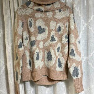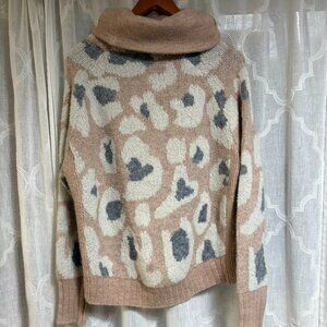 Blush colored -- Blush Leopard Cowl Turtleneck Sweater