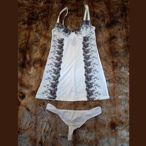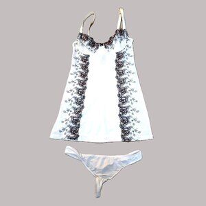 Blush Lingerie Embroidered Floral Chemise & Thong Set Sz L French Cream