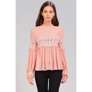 Blush 💗 Long Sleeve Crochet Trim Blouse