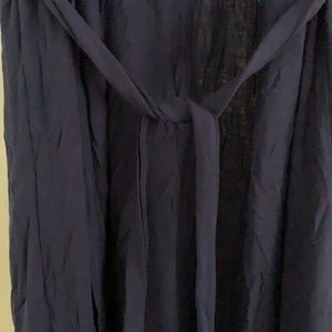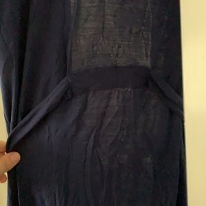 Super soft and comfortable navy modal robe with lace sleeve trim and tie waist