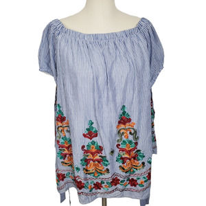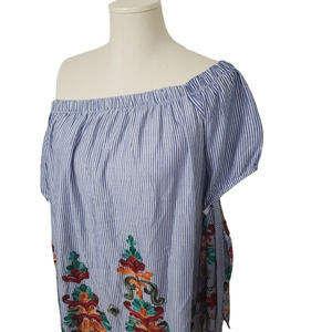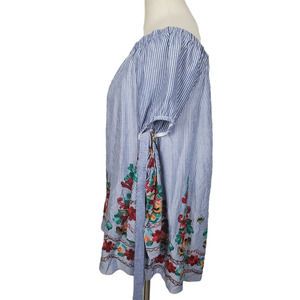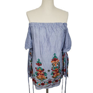 Blush Off the Shoulder Striped Embroidered Floral Tunic Blouse Women's Sz Large