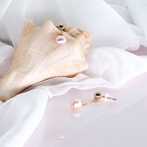 Blush Pearl Dainty Drop Earrings, 14K Gold Filled Ball Post Studs