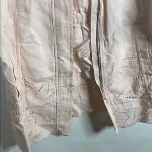 Blush pink, laser cut details, zipper front, 3/4 sleeves. Chico’s size 1