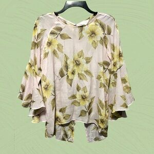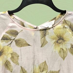 Lauren Conrad Boho Blouse • Blush Pink with Green Floral Print • 3/4 Bell Sleeve • Size Small