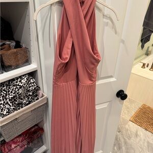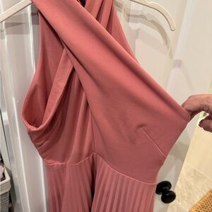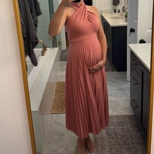 Ultra flattering blush pink maternity halter dress. Perfect for a bridal shower or maternity shoot or wedding, this dress offers a flattering fit and timeless design. Brand new never worn - professional photos with the model are beige but actual dress is blush pink custom made by designer