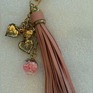 Blush Pink Tassel Keychain w/Glitter Hearts & Sprinkle Globe Charm -New -Unique