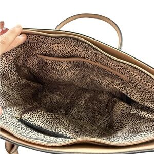 This pink tote bag features a structured design with a textured finish, offering a spacious main compartment for all your essentials. Its minimalist aesthetic and light hardware accents make it a versatile accessory for both professional and everyday use. The double top handles with buckle-style detailing add a touch of elegance to its classic trapezoid shape.