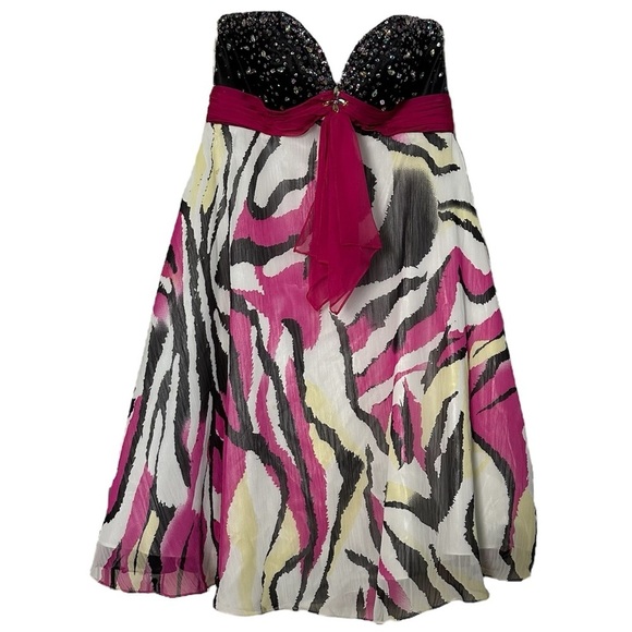 Blush Prom by Alexia Dress Strapless Zebra Print w/ Pink Sequins Formal Size 8