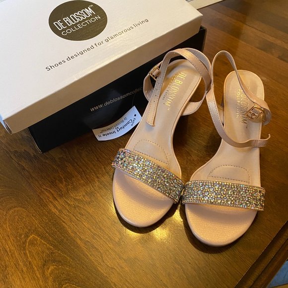 De Blossom blush rhinestone shoes, size 6. Low heel. Brand new with tags and original box. Never been worn.
