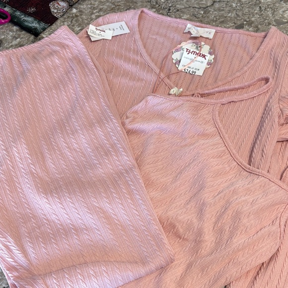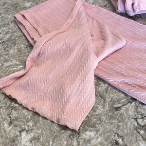 Chic blush ribbed lounge set. Perfect for relaxing in style. Three piece set with cropped tank and slightly flared bottoms