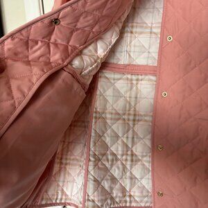 Blush Rose Quilted Long-Sleeve Barn Jacket w/ Contrasting Plaid/Taupe Lining