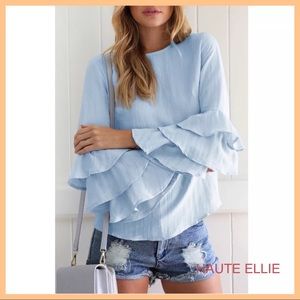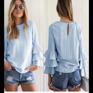 Powder Blue Ruffle Bell Sleeve Top.Button back closure. 100% Polyester. Price is firm unless bundled.