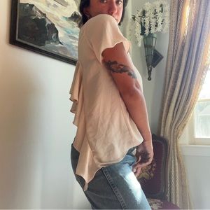 So pretty and easy to dress up. Lightly worn. Very faint mark near tag as seen in last photo. Cannot see when the shirt is on.