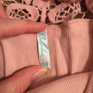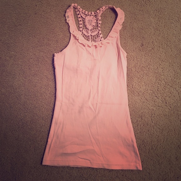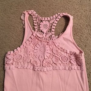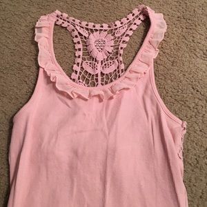 For sale is a slightly used blush Tank with a ruffle on front and lace racerback.