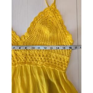Blush Womens L Yellow Crochet Peplum Cami Boho Ruffle Hem Y2K Festival Top