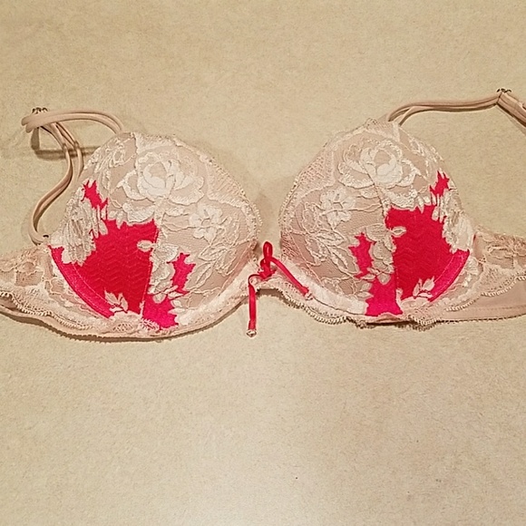 Blush and Hot Pink Lace Victoria's Secret Bra 32B