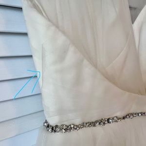 Since this was a sample dress the bottom of dress has slight darker borders (see pics)