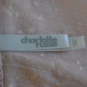 A transparent blush pink scarf from charlotte russe with an understated dot pattern in the same shade as the scarf's material.