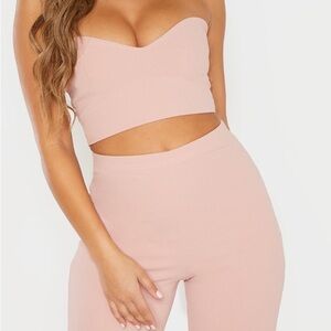 Two piece outfit (sweetheart crop top in size US 4 and wide leg pants in size US 6) in color blush in great condition! Only worn once no tags