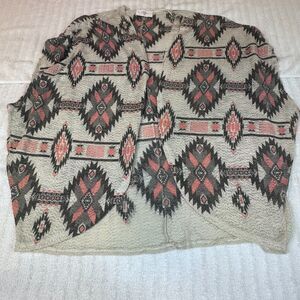 Blushed Cardigan Womens M Open Front Aztec Geometric Knit Sweater Boho Fall