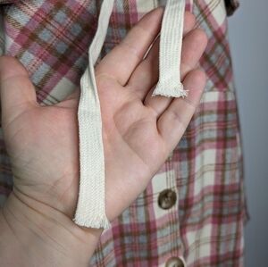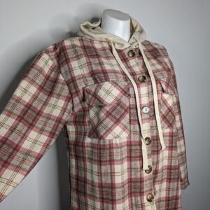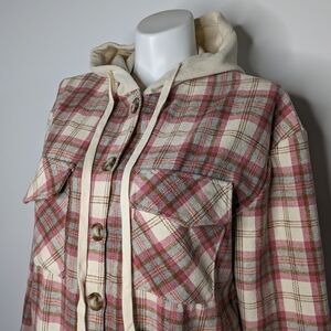 Blushing Brunette tan cream pink plaid button up hoodie jacket XL. Good condition.