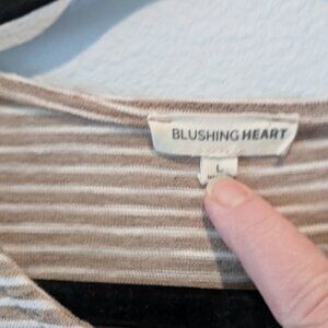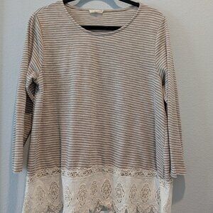 What a darling top! It is brown and white striped with beautiful lace around the bottom. I thought it was so cute but never had a place to wear it and it is about the only brown thing in my closet :-)