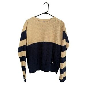 Blutsgechwister 100% Organic Cotton Striped Crew Sweater Women Size M Cream Blue