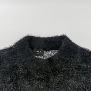 Blvck Paris Fuzzy Mohair Sweater Black White Striped Crewneck Pullover NWOT S
