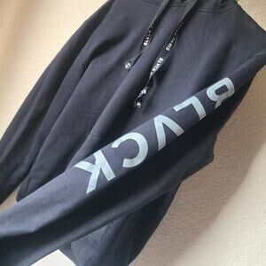 Blvck Paris Unisex Black Hoodie Size L. Preowned. Minor wear. Stylish black hoodie with bold sleeve print. Comfortable and trendy. Measurements Included In Pictures. Good Condition. Smoke Free Home. Offers Welcome.