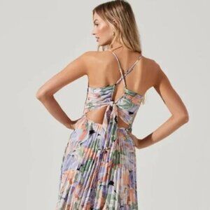 Blythe Floral Plisse Midi Dress - Size Small CORAL MULTI