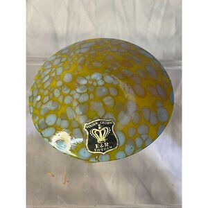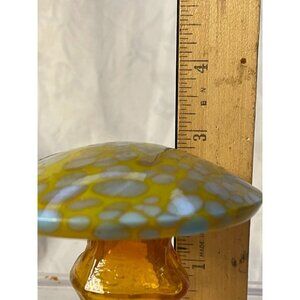 Lot of 1 1970s Bo Borgstrom Åseda Ebeling and Reuss Hand Blown Glass Mushroom from Sweden. I hand-picked this straight foot style, approx. 3.0 inch high, Sunshine Yellow with contrasting accent color beauty. The original foil label is Hall marked Golden Crown E and R. I removed the original brown paper wrapping to capture images. Another highly collectible item from my Fabulous Estate Sale Finds & part of thousands of Hard To Find Mid Century Modern old new stock acquired from inventory liquidation of an old variety store warehouse closed well over 35 years ago. Individually hand blown so no two alike. Sizes/colors are approximate. As with any hand-crafted item, imperfections are highly possible *SEE PICS-They are part of the description. Item itself is new however it or its Packaging may have dust, soil or other imperfection. Selling as is/as found, no cleaning is done. *I make every effort to sell only authentic merchandise. Returns MUST be EXACT item(s), EXACT weight, returned with original shipped to packaging. Questions? Just Ask!.