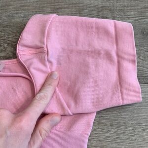 Condition: Great. Please see all photos. The purple bra has the size tag removed. The last photo shows you it perfectly aligns with the XS pink bra. Pink bra has mark on shoulder, it may be removable.