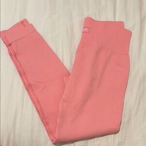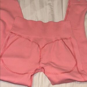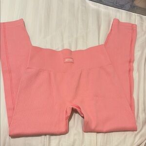 Only worn once for a Photoshoot. Like new. Bo + Tee ribbed pink leggings size Small