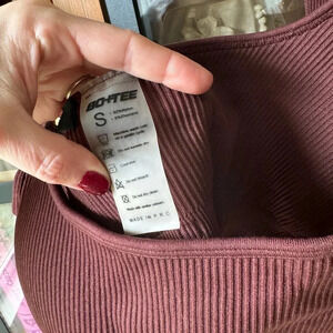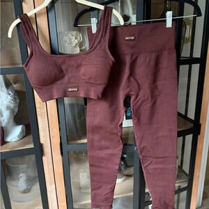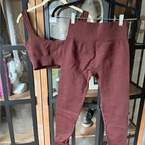 Bo + Tee workout set No Sweat Ribbed Scoop Neck Sports Bra Dark Brown leggings
